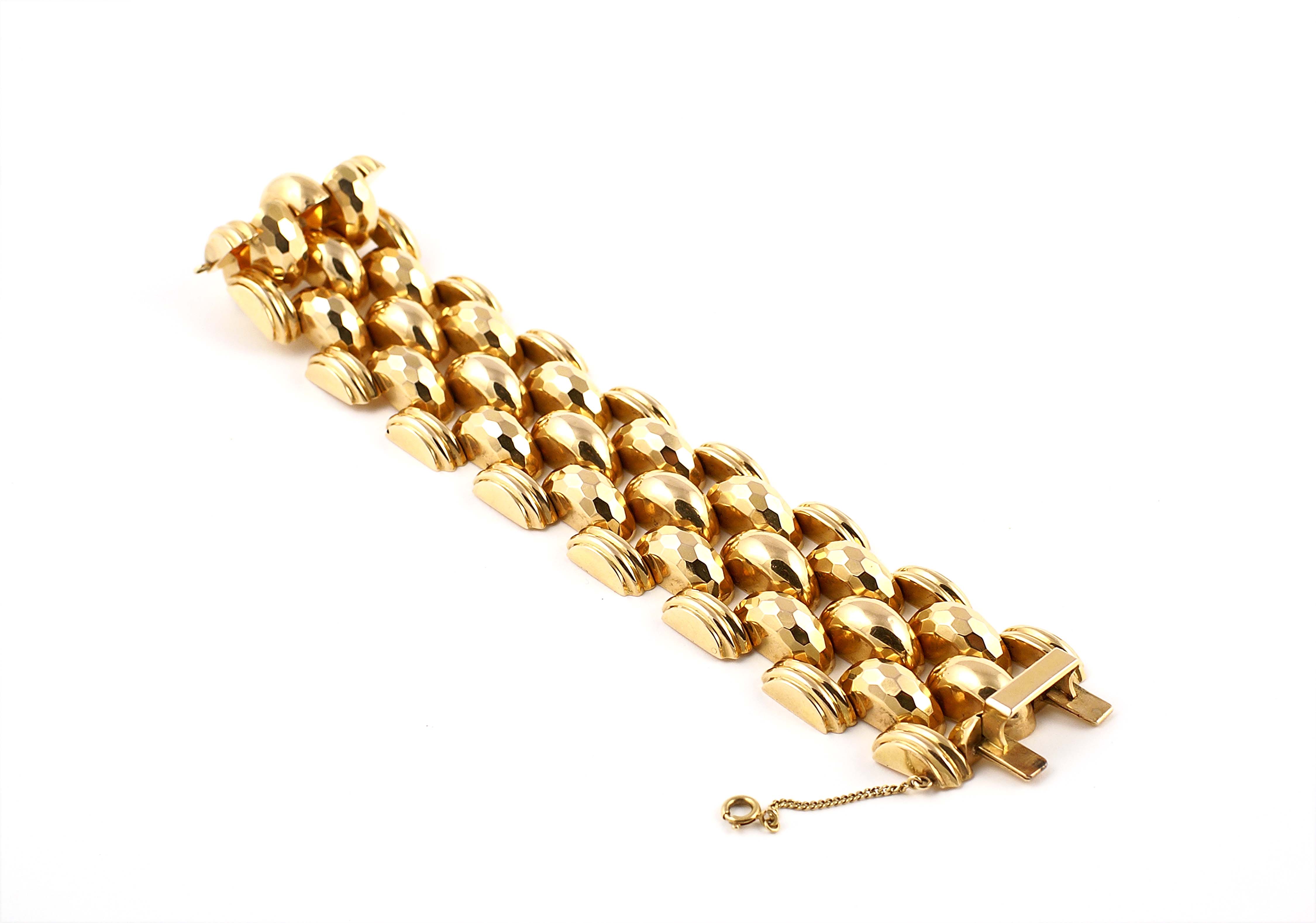 racciale in oro rosso 18kt maglia a carrarmato, anni 40, gr. 75,2.