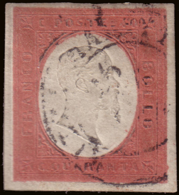 "[SARDEGNA] 1854 III emissione, 40c. rosso mattone. Firma Em. Diena Used..........(Sass. 9)"