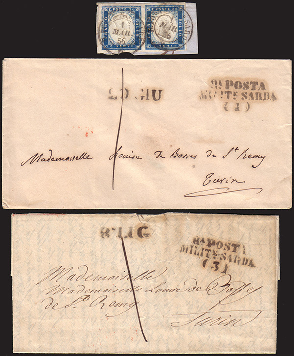 [SARDEGNA] 1848/1856 Posta Militare Sarda, lotto composto da 2 lettere non...