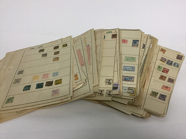 [MONDIALI] 1841/1936 Collezione di francobolli montata con linguelle su oltre 300 fogli d'album artigianali, grande varietà di paesi rappresentati tra cui Cina, Hong Kong, Colonie Italiane, inglesi e francesi, India e Stati Feudali.. Da esaminare. MH/Used