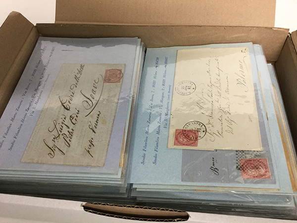 [REGNO D'ITALIA - STORIA POSTALE] 1862/1880 circa Vittorio Emanuele II, lotto composto da oltre 70 lettere e giornali con interessanti affrancature del periodo, molte delle quali con esemplari della serie De La Rue. Notati tra gli altri, segnatasse n.1 e 2, e una marca da bollo usata per posta. Da esaminare. Covers