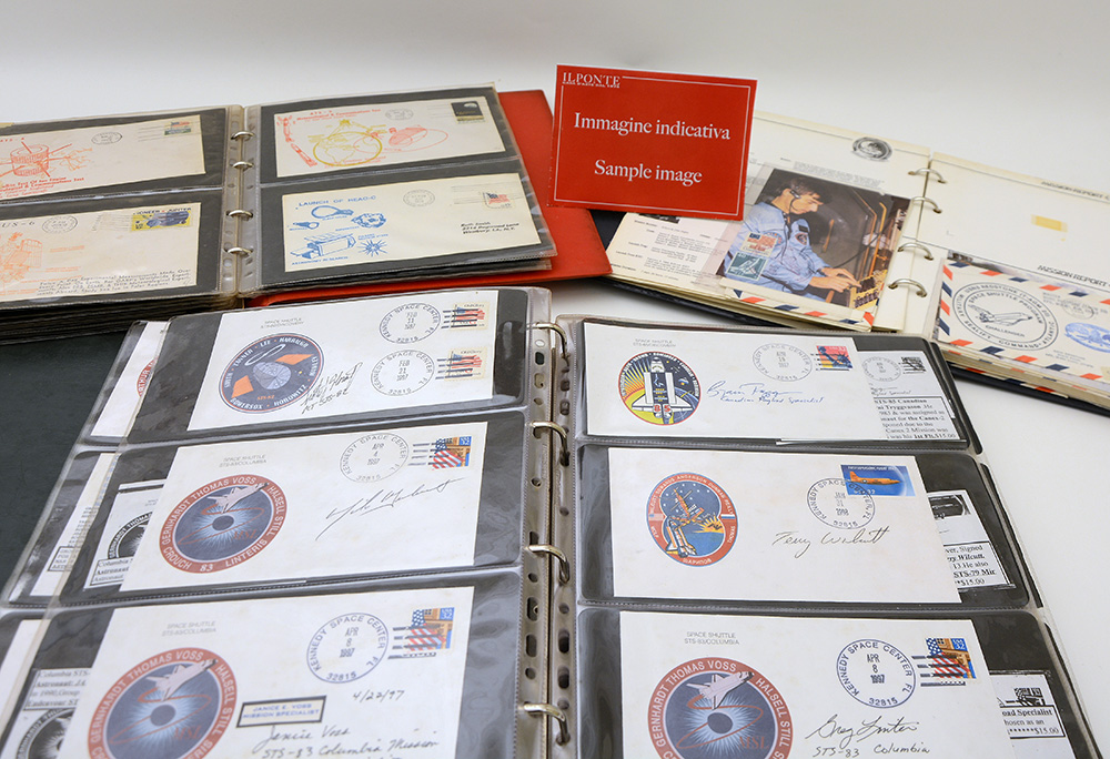 [TEMATICHE - SPAZIO] Importante collezione formata da migliaia di documenti postali commemorativi, notate decine di firme autografe di astronauti sia americani che russi, in 12 raccoglitori e una scatola. In 2 scatoloni. Da esaminare. Covers/Postcards