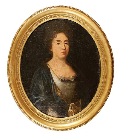 Scuola francese del XIX secolo, "Ritratto femminile", olio su tela ovale...