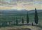 Silvio Consadori (Brescia 1909 - Burano 1994) "Paesaggio toscano" olio su compensato (cm 25x34.5) Firmato in basso a destra Al retro: cartiglio e timbri Provenienza: Galleria d'Arte Ponte Rosso, Milano. cartiglio e timbri al retro In cornice