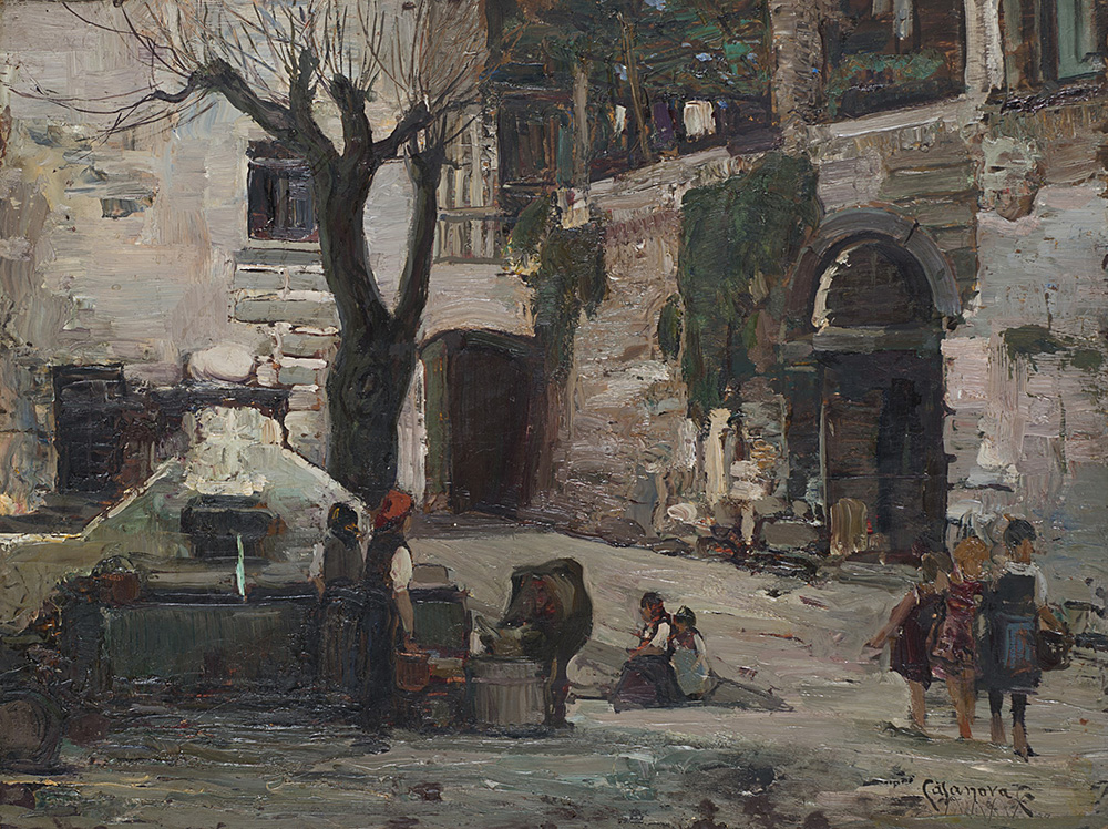 Lot 2319 | Carlo Casanova (Crema 1871 - Quarna Sotto 1950) "Al pozzo" olio su tavoletta...