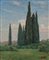 Gigi Comolli (Milano 1893 - 1976) "Cipressi su lago di Garda" 1935 olio su...