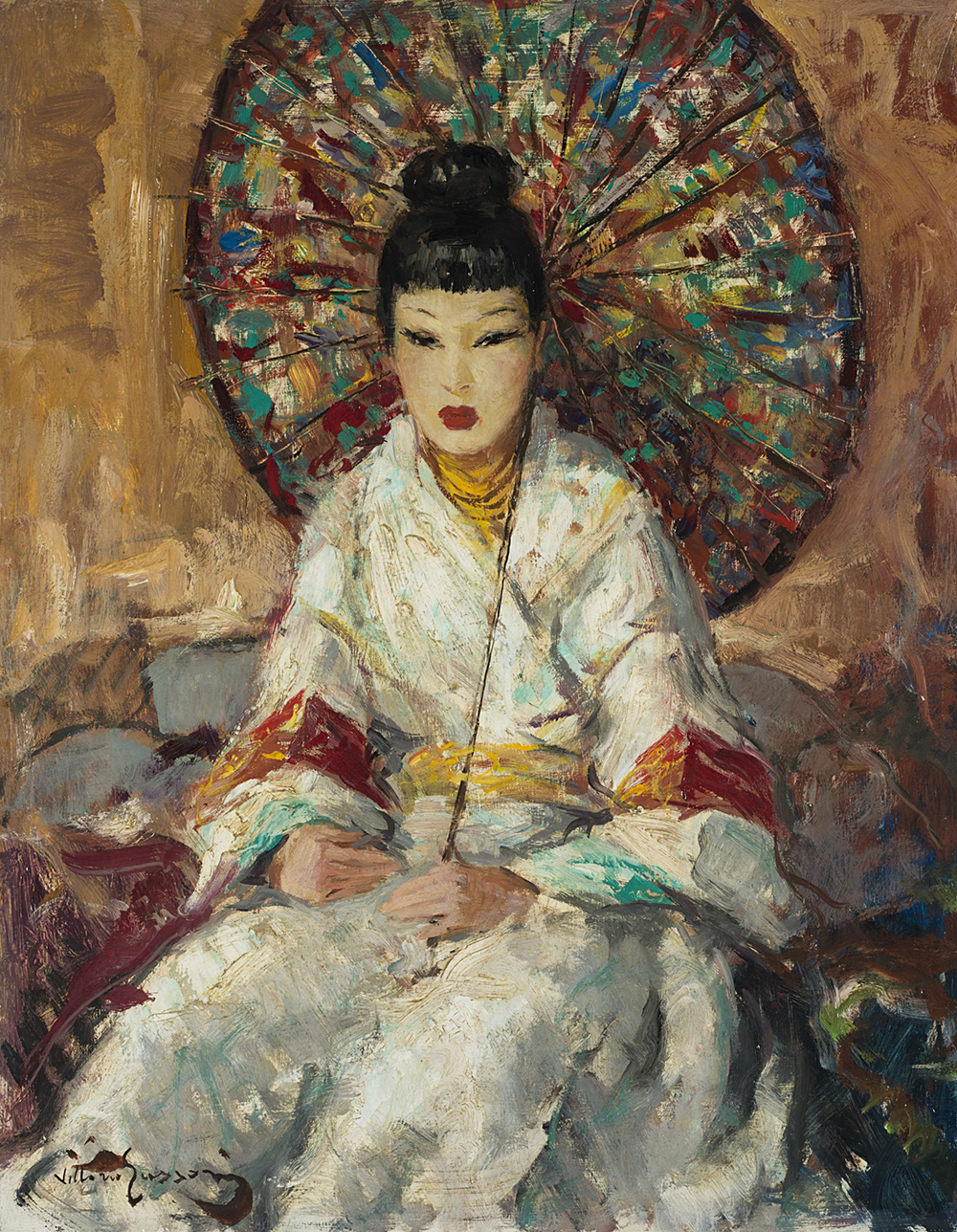 Vittorio Gussoni (Milano 1893 - Sanremo 1968) "Geisha" olio su compensato (cm 50x38.5) Firmato in basso a sinistra In cornice