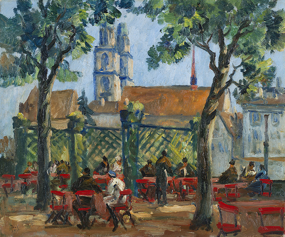 Roberto Marcello "Iras" Baldessari (Innsbruck 1894 - Roma 1965) "Caffè a Zurigo" olio su tela (cm 46x55) Firmato in basso a sinistra In cornice
