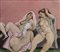 Bernardino Palazzi (Nuoro 1907 - Roma 1987) "Studio per: il Giudizio di Frine (Particolare di sinistra)" 1975 olio su tela (cm 30x35) Firmato in basso a destra Al retro: firmato, datato e titolato Provenienza: Galleria d'Arte Adda, Capriate San Gervasio. Timbri al retro In cornice