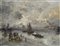 Pompeo Mariani (Monza 1857 - Bordighera 1927) "Nubi sul porto" olio su cartone (cm 30x39) Firmato in basso a sinistra In cornice