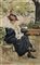 Raffaele Ragione (Napoli 1851 - 1919) "La cucitrice al parco" olio su tela...