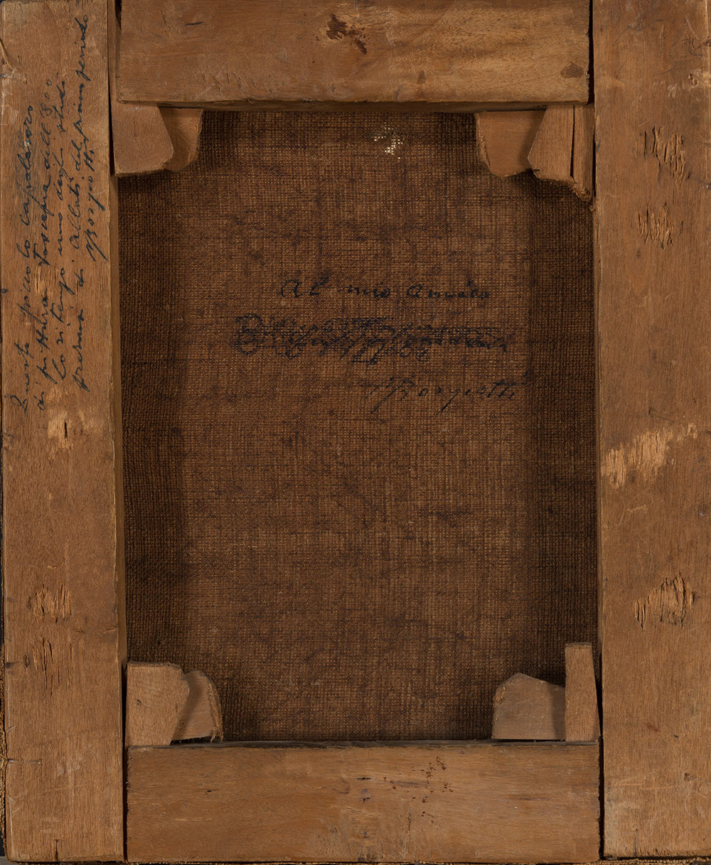 Giuseppe Abbati (Napoli 1836 - Firenze 1868) (Attribuito) "La supplica" olio su tela (cm 24x19.5) Al retro: dedica e autentica di Mario Borgiotti che così dichiara "Questo piccolo capolavoro di pittura toscana dell'800 lo ritengo uno degli studi preziosi di Abbati del primo periodo" In cornice