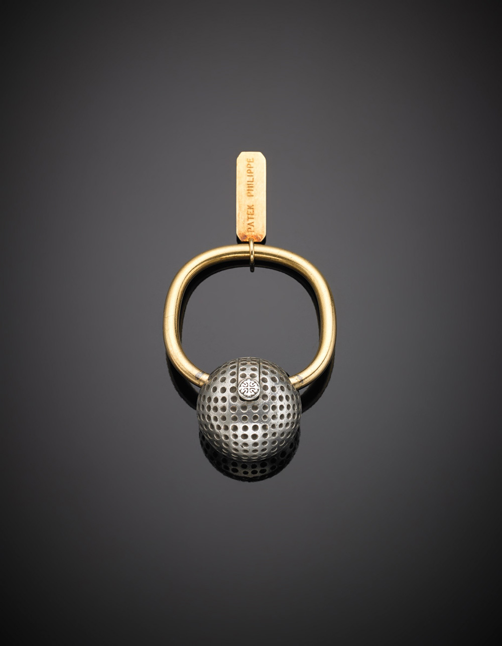 Portachiavi Patek Philippe argento e oro a guisa di pallina da golf, g.17,40...