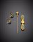 Demi-parure in oro giallo composta da spilla, spillone ed orecchini a lobo...