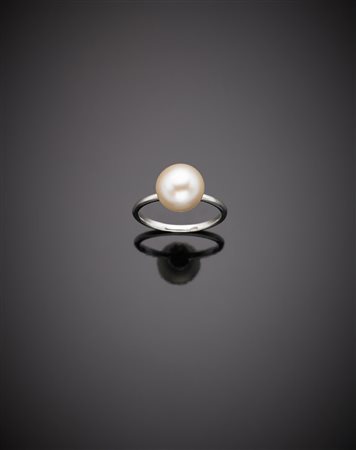 Anello in oro bianco con perla di mm 9,40 circa, g. 3,00 misura 9/49 White gold and mm 9,40 pearl ring, g. 3,00 size 9/49