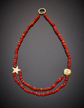 Collana in corallo rosso arancio con "stella e sole" in oro giallo come la...