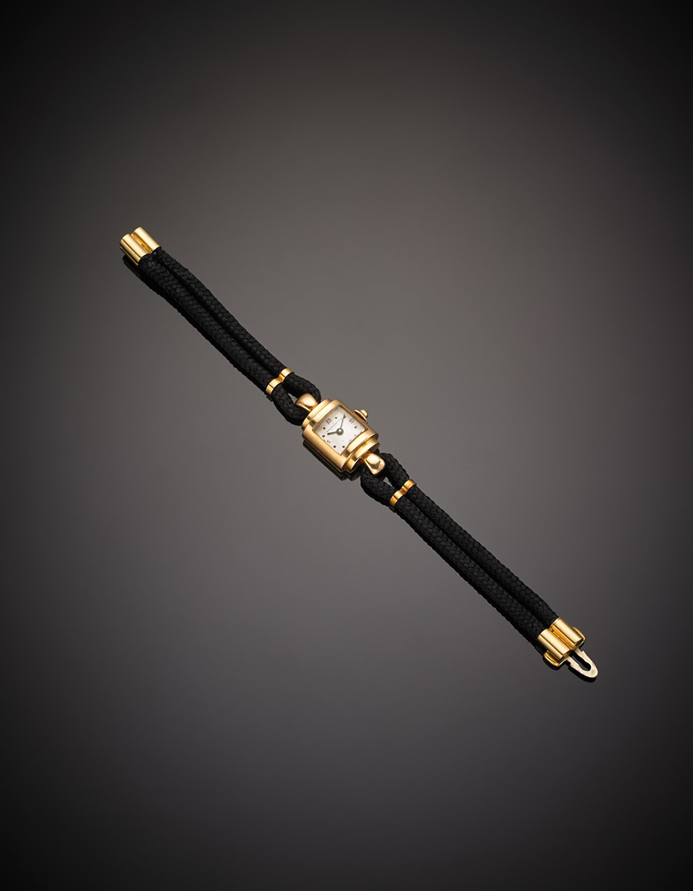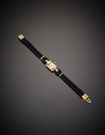 HAUSMANN & CO Orologio in oro giallo e tessuto intrecciato, g.15,00 lungh. cm 16 circa HAUSMANN & CO Yellow gold and cloth braided wristwatch, g.15,00 circa length cm 16 circa