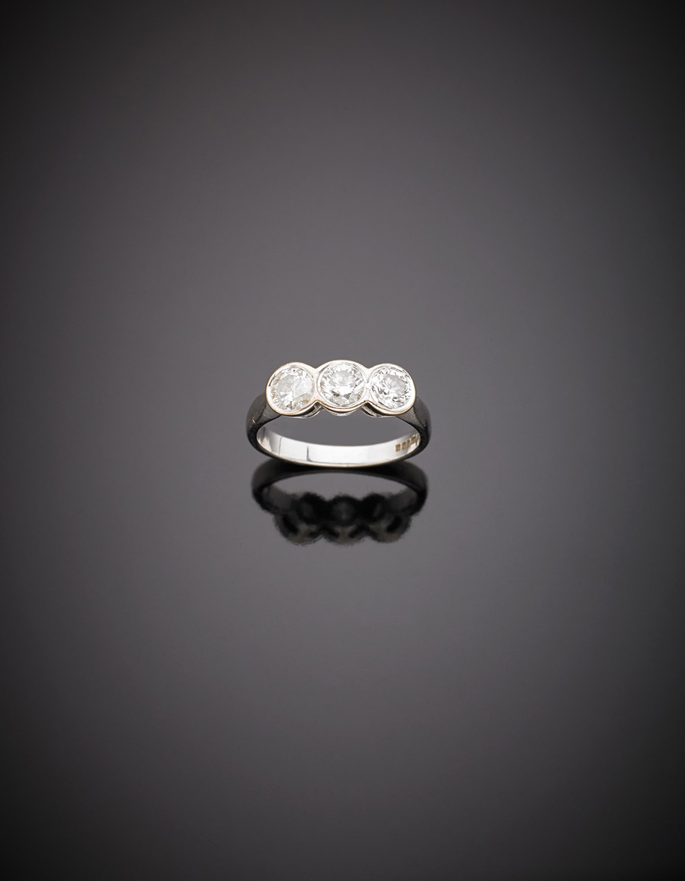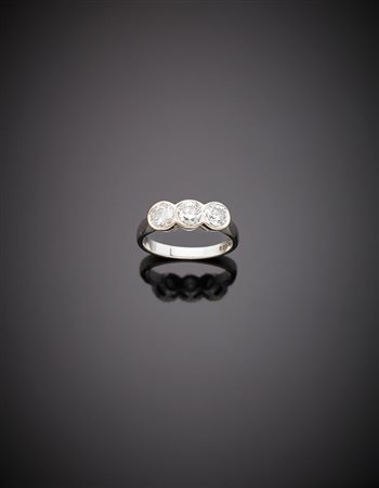 Anello trilogi in oro bianco, complessivi ct.0,95, g.4,00 misura 12/52 White...