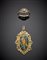 Lotto composto da pendente ed anello in oro giallo e bianco, nel pendente una miniatura con raffigurazione sacra, ed al centro dell'anello un diamante mezza rosetta, complessivi g. 9,30 Lot comprising a bi-coloured gold pendant and ring with miniature and a rose cut diamond, g.9,30