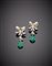 Orecchini pendenti in oro bianco a guisa di fiocco con diamanti e smeraldi a...