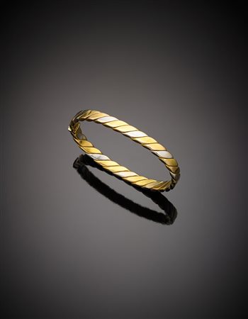 Bracciale alla schiava apribile in oro bianco e giallo a guisa di fune,...