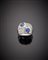 Anelllo in oro bianco con diamanti rotondi a pavè e due zaffiri di forma a...