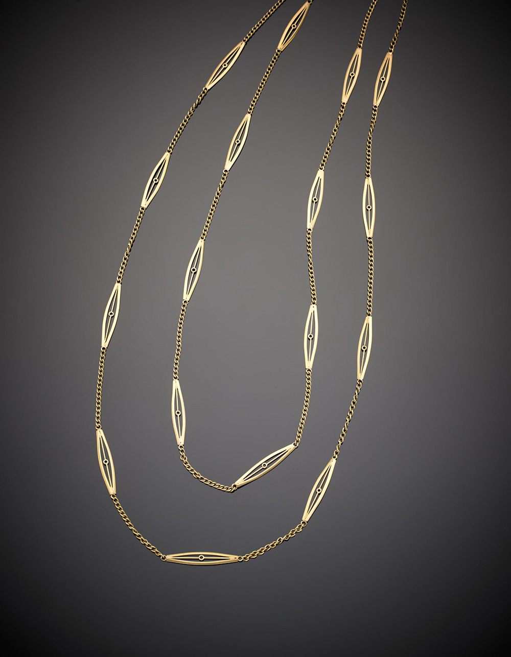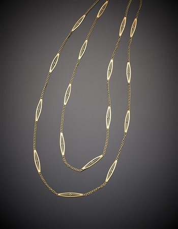 Lunga catena in oro giallo a losanghe, g.23,30 lungh. cm 154 circa Long yellow gold lozenge linkchain necklace, g.23,30 length cm 154 circa