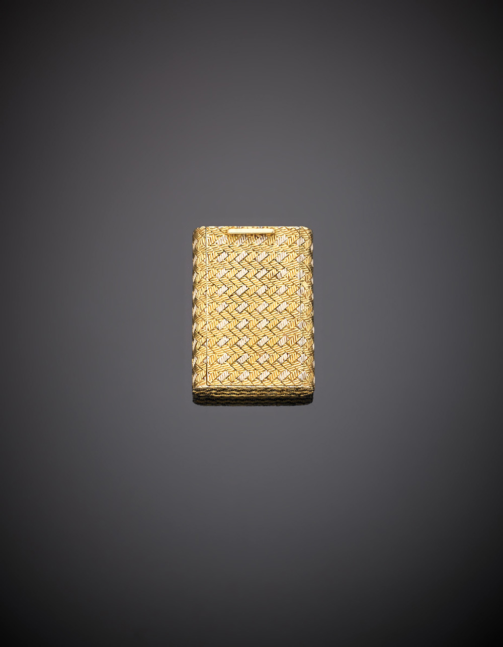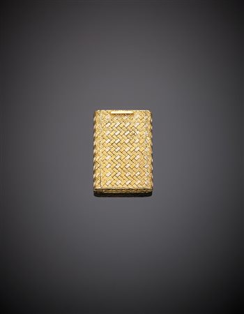Yellow and white gold basket weave pill box with sliding lid, g.21,40 measurements cm 3,6x2,7x0,9