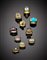 Lotto di dieci anelli in oro giallo e bianco con gemme varie naturali e...