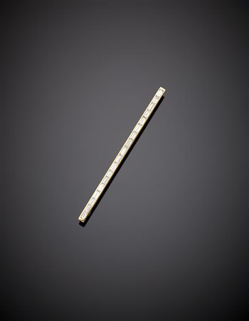 Spilla in oro giallo a barretta con diamanti a baguette, g.5,30, lungh. cm 7 circa