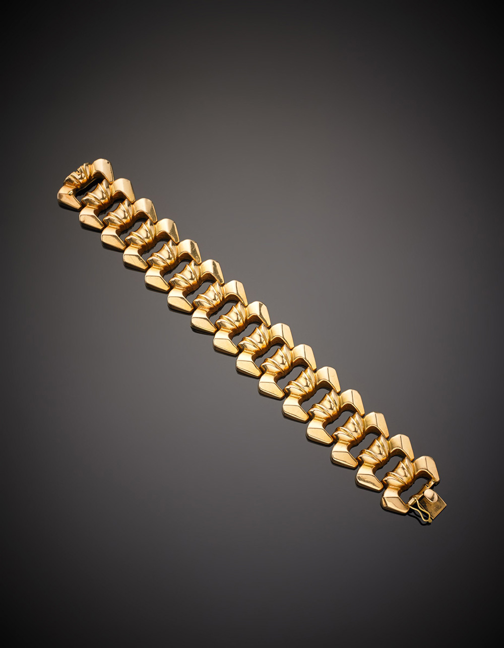 Bracciale modulare in oro giallo, g.39,60 lungh. cm 18,5 h cm 2,6. In scatola di BELDI' Torino Yellow gold modular bracelet, g.39,60 length cm 18,5 h cm 2,6. In BELDI' Torino case