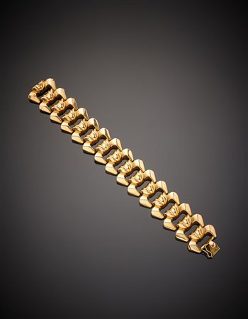 Bracciale modulare in oro giallo, g.39,60 lungh. cm 18,5 h cm 2,6. In scatola...