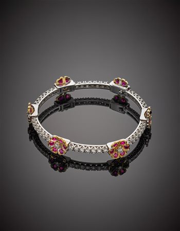 MISSIAGLIA Bracciale in oro giallo e bianco con diamanti e rubini a formare...