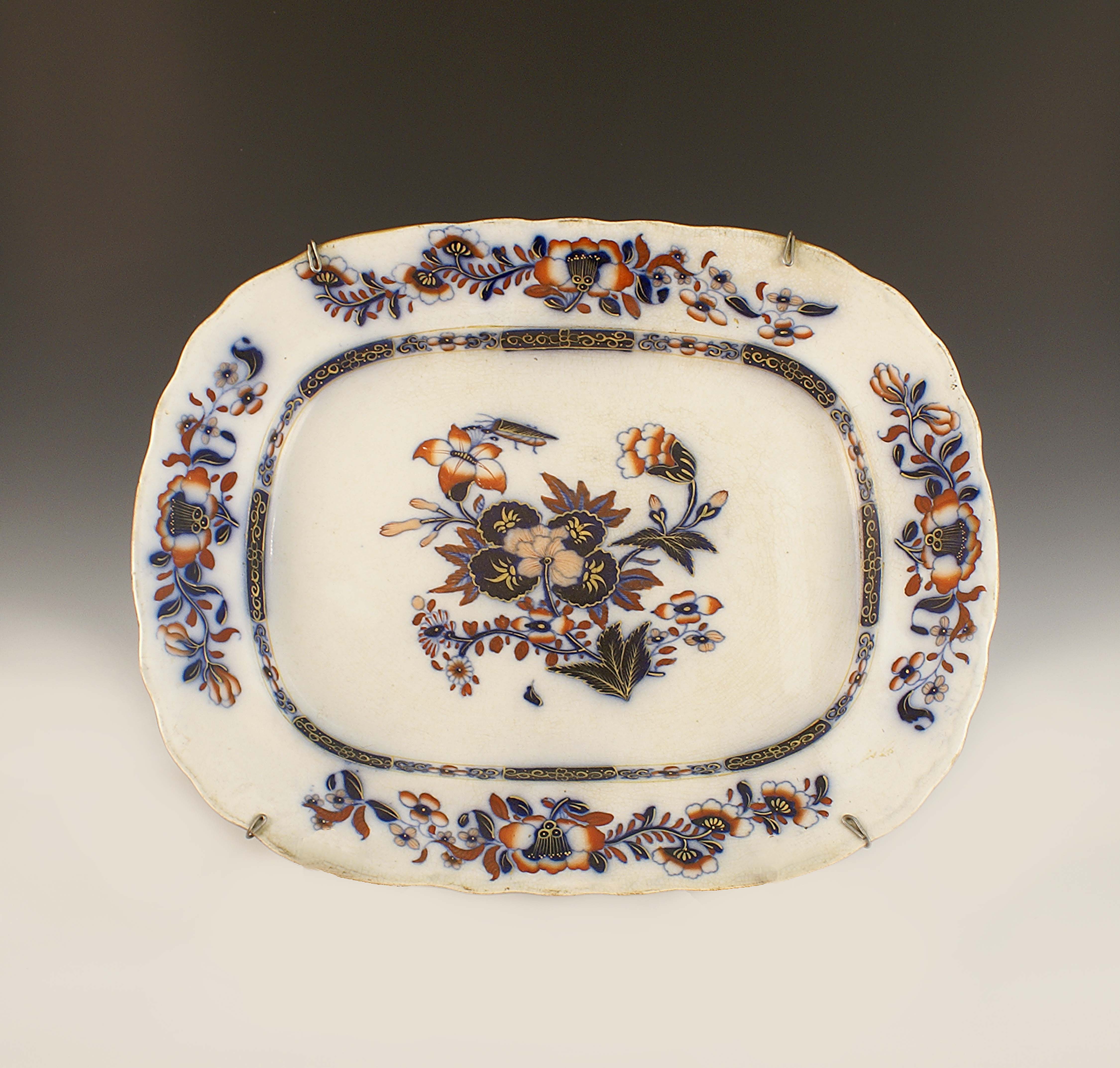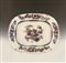 Grande piatto in porcellana dipinta a policromia di linea squadrata, Cina, XIX secolo, cm. 44x55.
