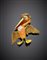 FRASCAROLO Broche a guisa di pellicano in oro giallo con smalti dal giallo all'aragosta rifinita con diamanti e un rubino, g.49,90 lungh. cm 7,50 FRASCAROLO Yellow gold, pinkish yellow enamel, diamond and a ruby pelican brooch, g.49,90 length 7,50