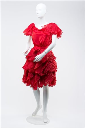 VALENTINO Vestito "tulipano" in chiffon rosso con "petali" plissé soleil (tg 38) VALENTINO A red chiffon "Tulip" dress (size EU 38)