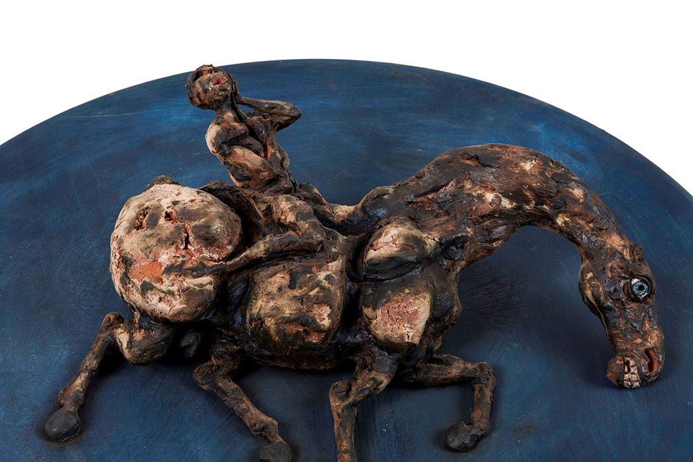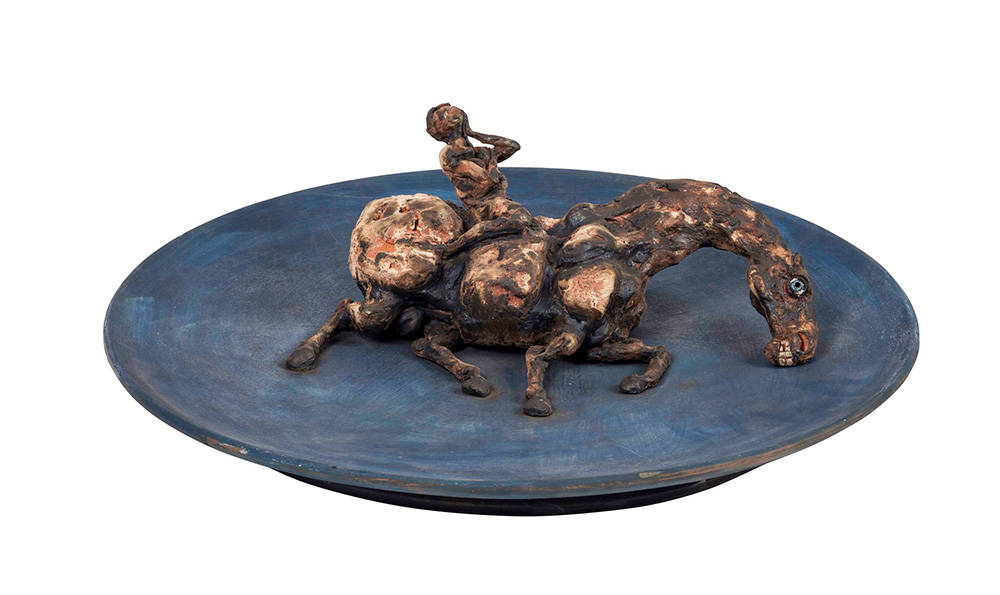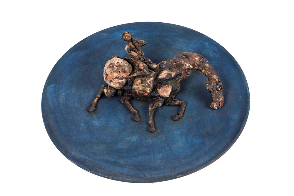 Agenore Fabbri (1911-1998), Piatto, 1950-1960 terracotta colorata, diametro cm 51,5 Manifattura San Giorgio, Italia L'autenticità dell'opera è stata confermata da Luca Fabbri
