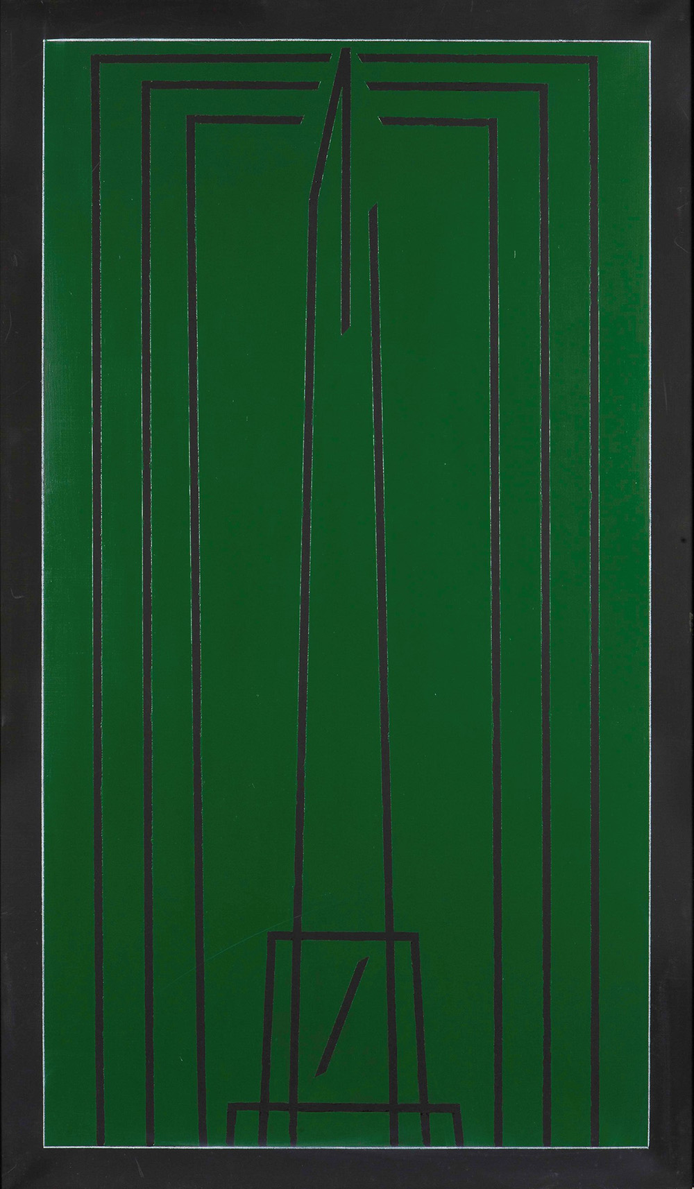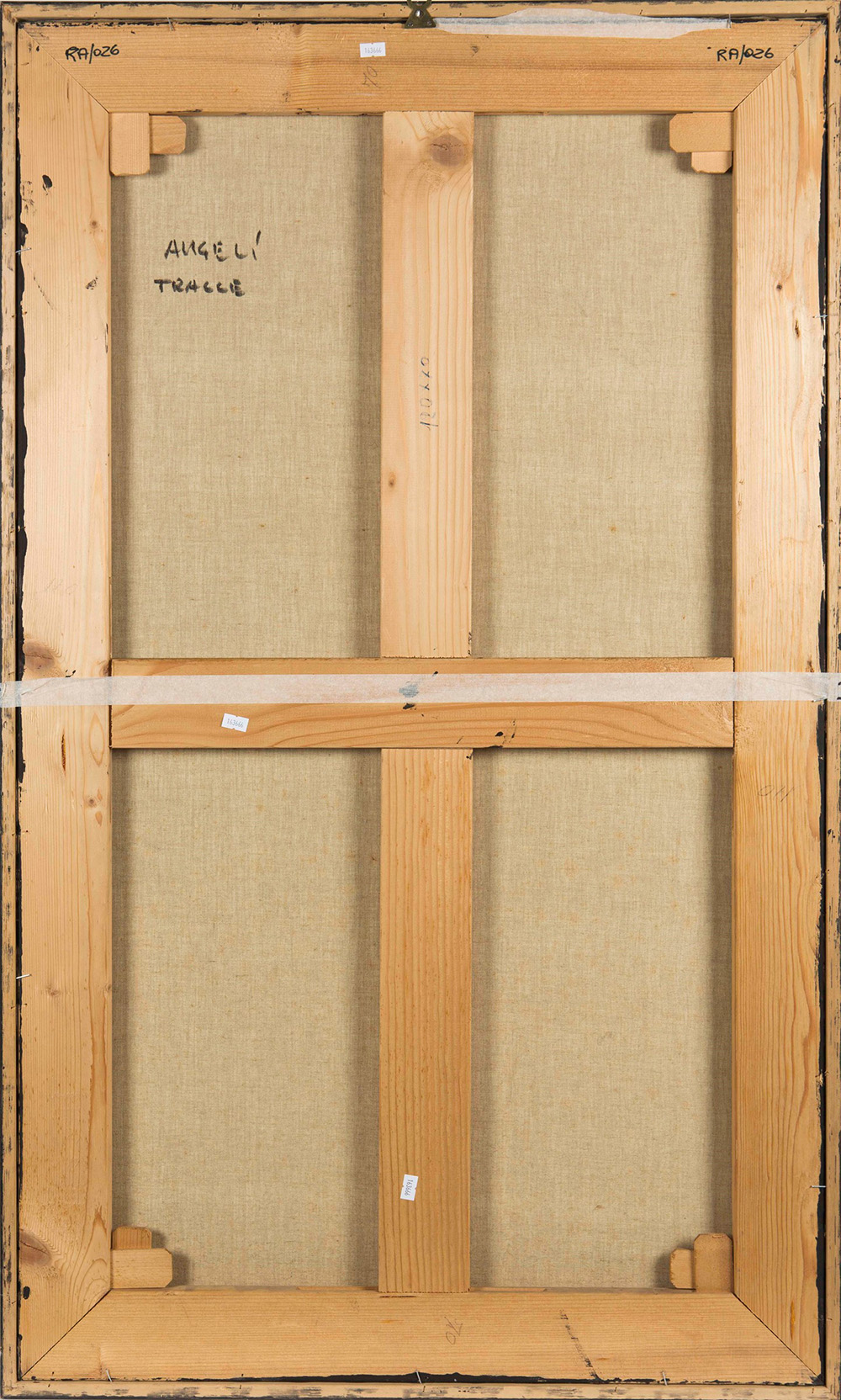 Franco Angeli (1935-1988), Tracce, 1987-88 tecnica mista su tela, cm 119,5x69,5 firmato e intitolato al retro Opera registrata presso l’Archivio Franco Angeli con il n. P-260916/765 in data 26 settembre 2016