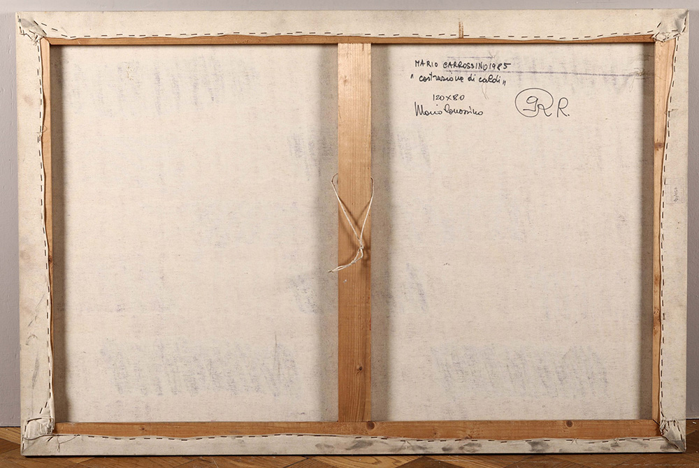 Mario Carossino, Costruzione di caldi, 1985 acrilico su tela, cm 80x120 firmato, datato e intitolato al retro