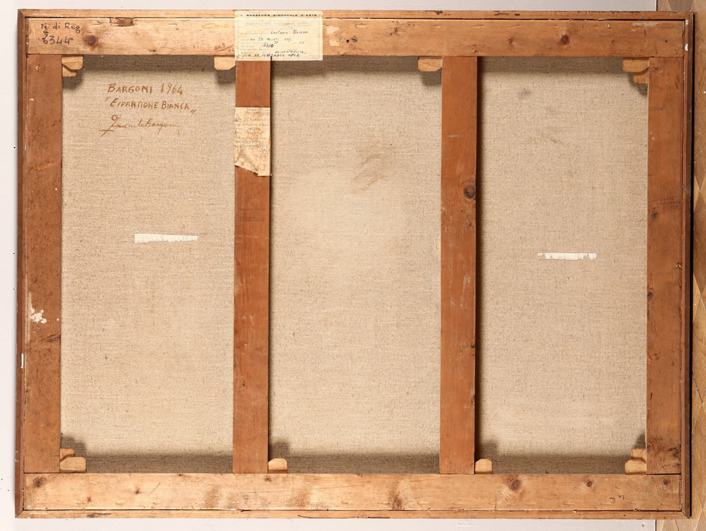 Giancarlo Bargoni (1936), Espansione bianca, 1964 olio su tela, cm 97x130 firmato, intitolato e datato al retro Timbro al retro della Galleria Rotta, Genova , Provenienza: Galleria Rotta, Genova