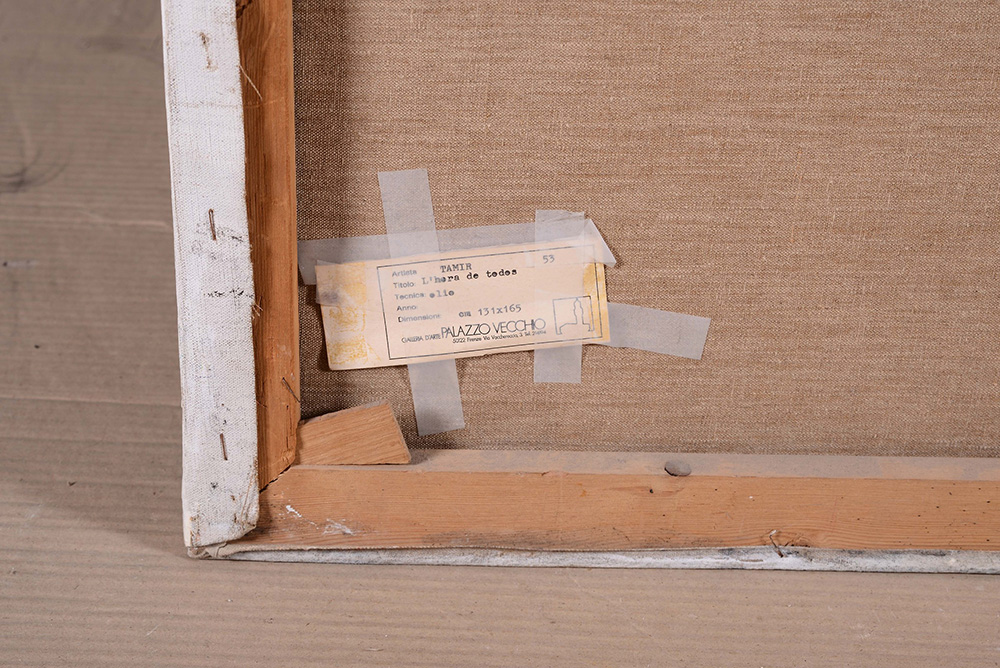 Moshe Tamir (1924-2004), L’hora de todos olio su tela, cm 165x131 firmato in basso a sinistra Etichetta al retro della Galleria d’Arte Palazzo Vecchio, Firenze