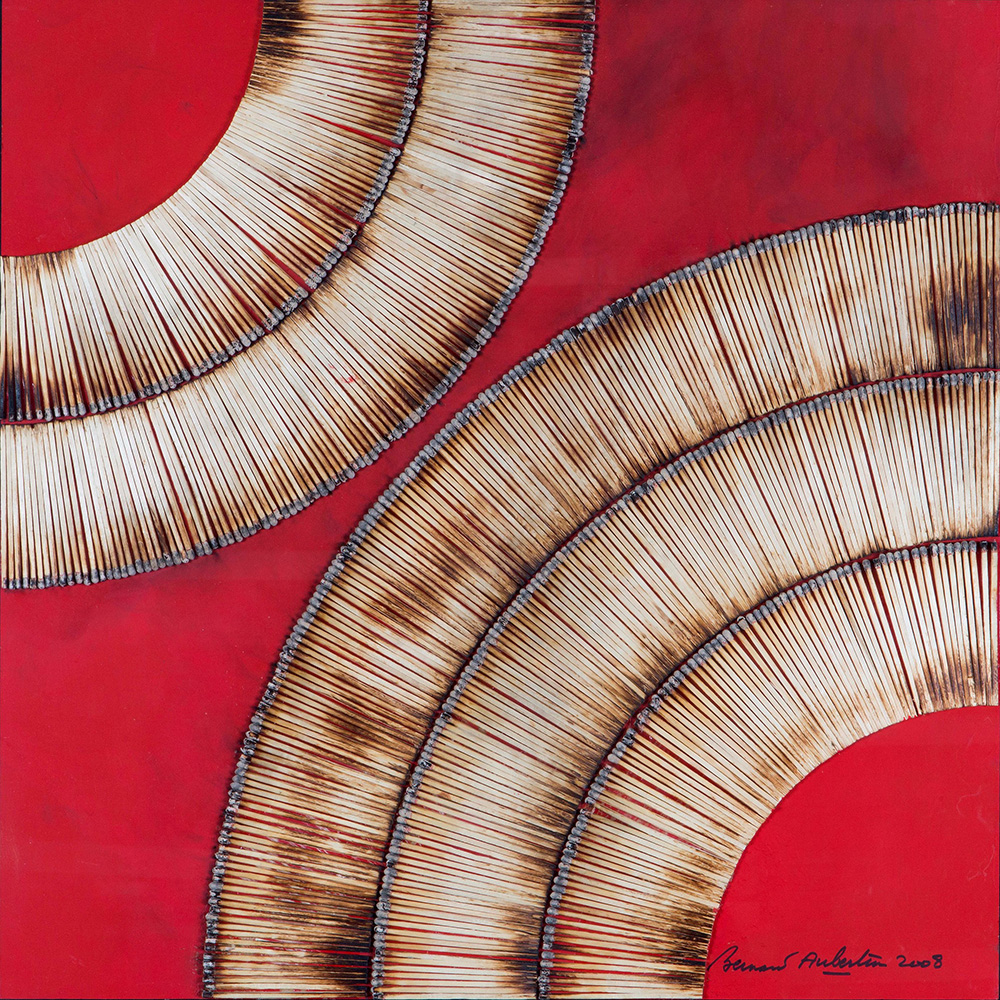 Bernard Aubertin (1934), Dessin de Feu sur table rouge, 2008 fiammiferi bruciati su tavola rossa, cm 60x60 Opera registrata presso l’Archivio Bernard Aubertin in data 24 marzo 2015 con il n. DFT-20700000802015-RSN, Pubblicazioni: Bernard Aubertin, Feu sur bois, a cura di Jolanda Rosenberg, ill. p. 91