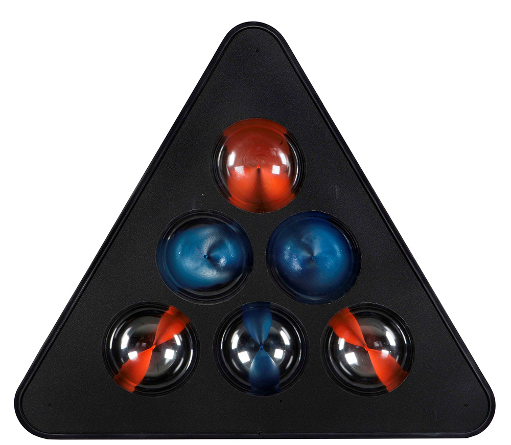 Franco Costalonga (1933), OCBA6TN sei sfere in metacrilato, plexiglass e legno, cm 63x71 firmato ed intitolato al retro
