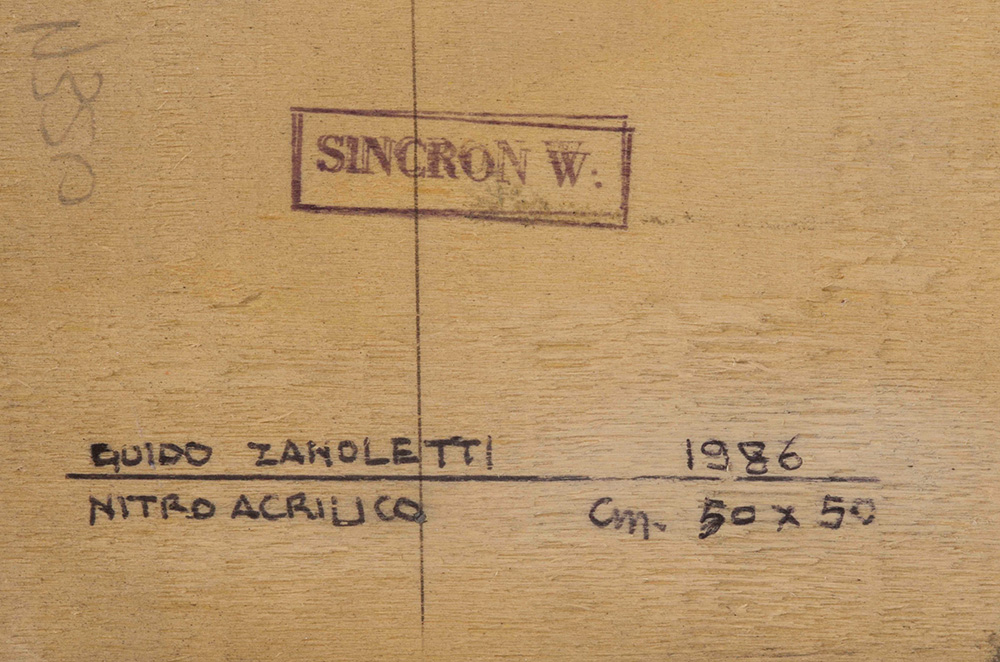 Guido Zanoletti (1933), Senza Titolo, 1986 nitro acrilico su tavola, cm 50x50 firmato e datato al retro , Provenienza: Collezione privata, Milano Centro Culturale Sincron, Brescia
