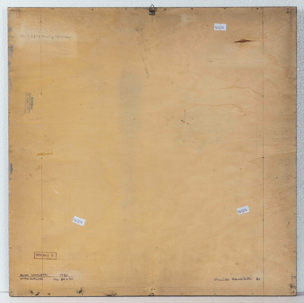 Guido Zanoletti (1933), Senza Titolo, 1986 nitro acrilico su tavola, cm 50x50...