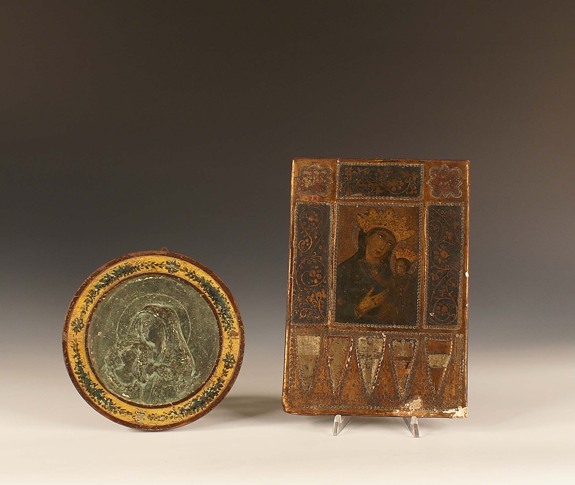 Lotto composto da due oggetti in legno, raffiguranti immagini sacre, misure...