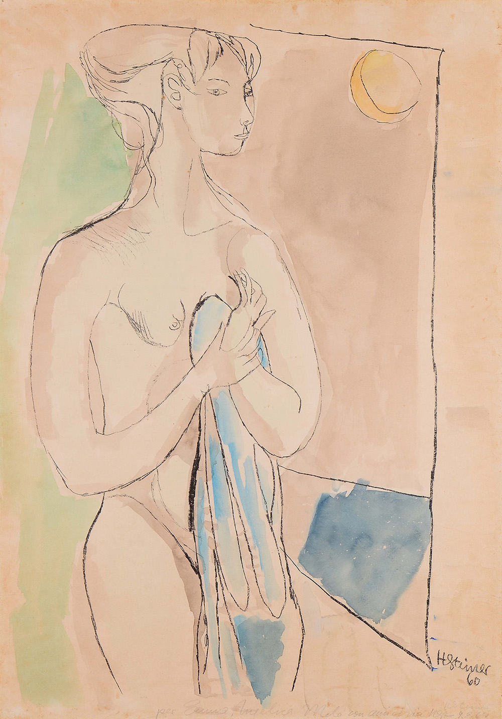 Herbert Steiner (1923-2001), Nudo femminile, 1960 acquerello su cartoncino, cm 85,5x60 firmato, datato e dedicato in basso a destra