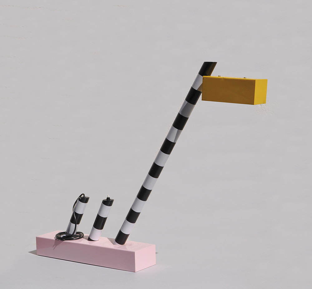 Metallo laccato rosa, nero e giallo, h 68 cm, 104 cm x 12 cm, produzione