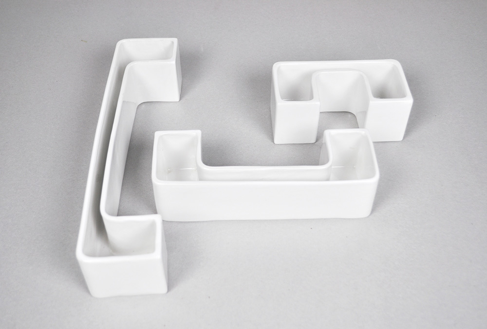 Ceramica bianca, Danese Milano, h 6, 13,5 x 6,5 cm; h 6, 29, 6,5 cm; h 6, 20, 6,5 cm;