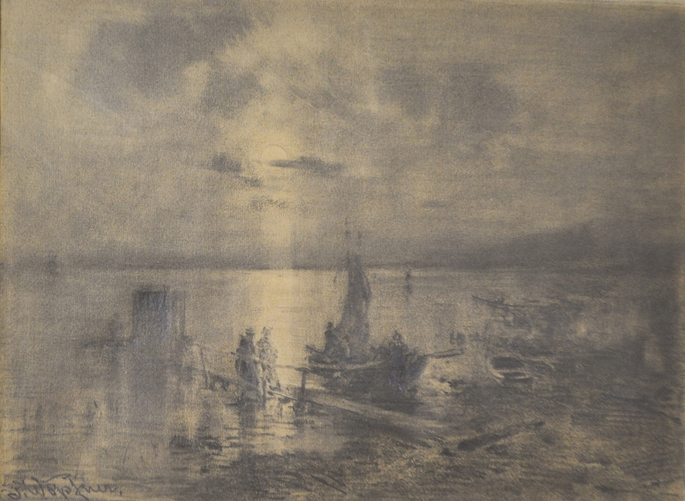 Josef Wopfner (Schwaz 1843 – München 1927) Mondnacht am Chiemsee;Mondnacht am...